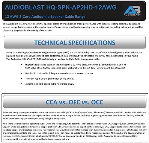 Amazon Com Audioblast Hq Spk Ap2hd 12awg 15 Foot 2 Core 99 99 Ofc Ultra Flexible Audiophile Speaker Cable Pair W Eminence Gold Plated Banana Plugs 12 Gauge Home Audio Theater